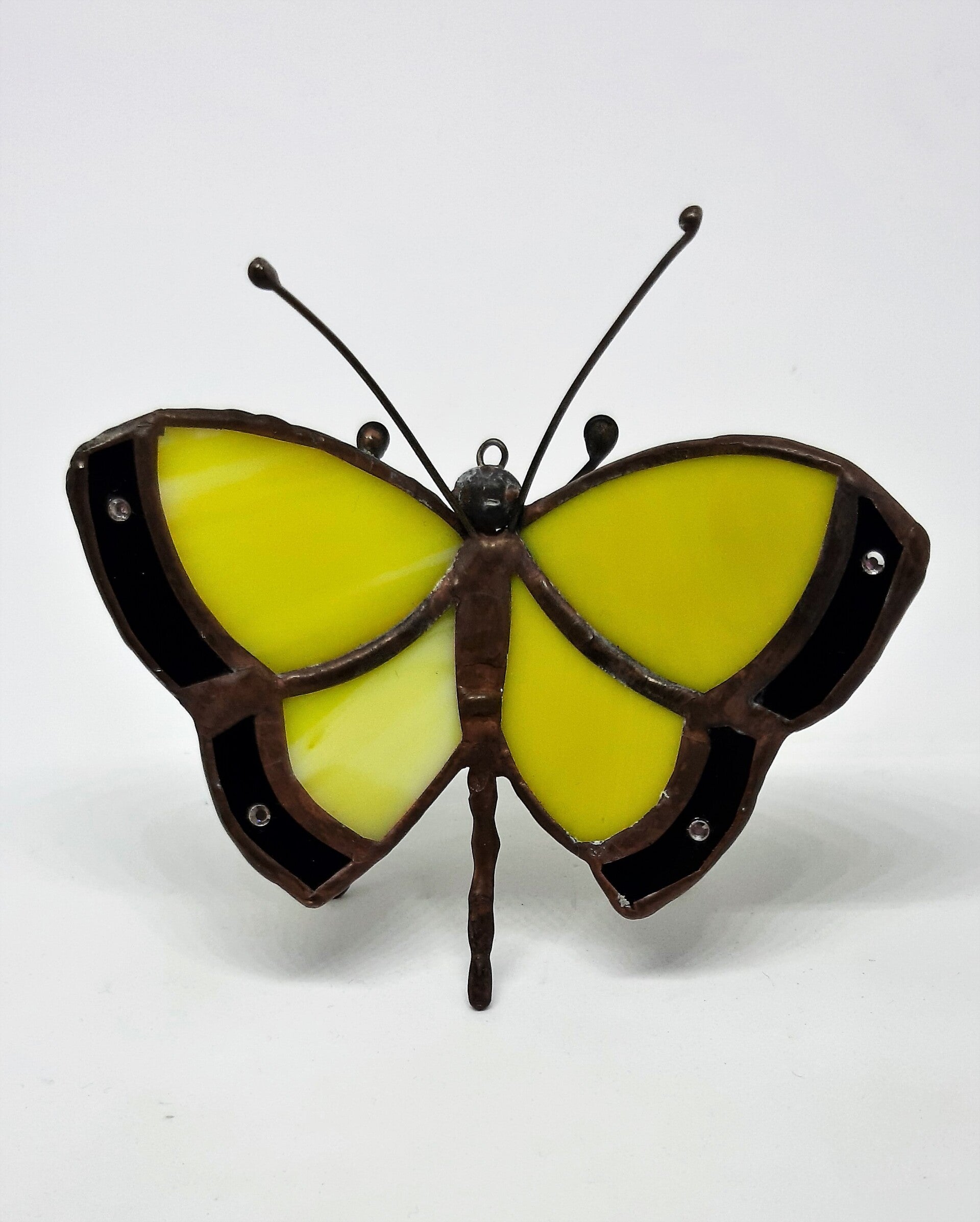 Aan het hoofd zit een klein oogje bevestigd, zodat de vlinder ook kan worden opgehangen.