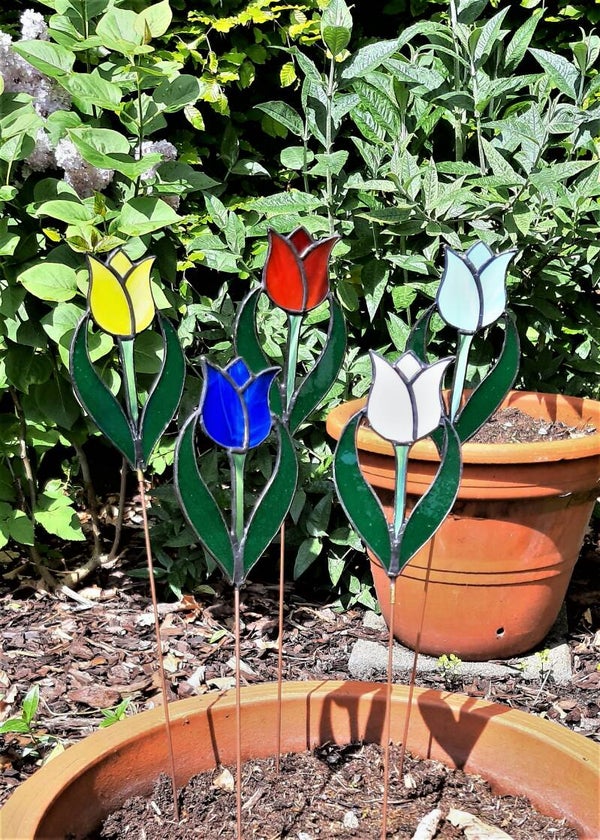 Tulp in Tiffany-stijl (koperfolie), vervaardigd uit prachtig zachtroze glas, meet 11 bij 7 cm. De steker, 30 cm lang, kan met een zachte draaiende beweging worden verwijderd en op dezelfde manier worden teruggeplaatst. Verkrijgbaar in meerdere kleuren. De prijs is inclusief verzending in een brievenbusdoosje.
