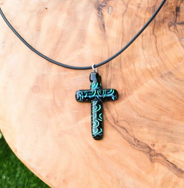Het hangt af van hoe het licht op het dichroïsche glas valt; daardoor verandert het van kleur en krijgt het een schitterende glans.