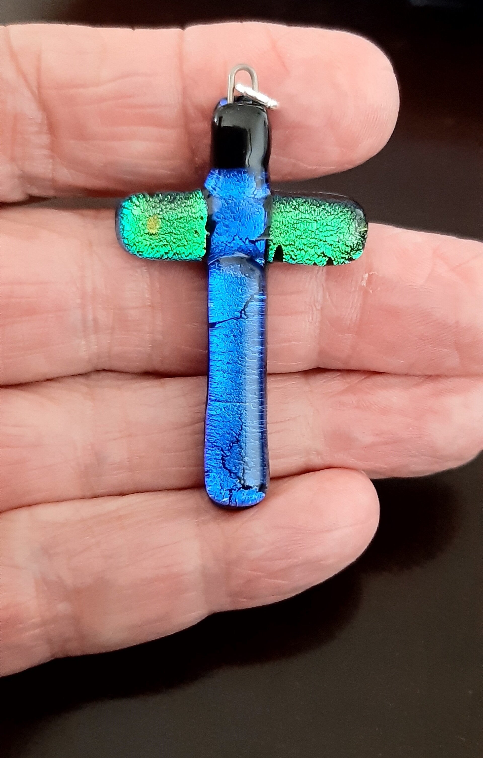 Het hangt af van de manier waarop het licht op het dichroïsche glas valt; daardoor verandert het van kleur en krijgt het een schitterende glans.