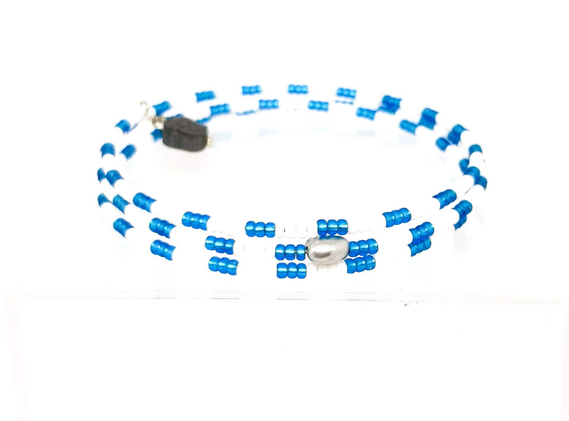 Glansrijke kralen in wit en capri blauw (11/0) vormen een charmant en modieus setje.