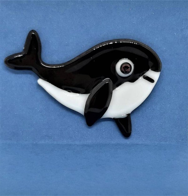 Een unieke en aantrekkelijke magneet, vervaardigd uit glas via de techniek van glasfusing. Deze heeft een lengte van 8 cm en een hoogte van 4,5 cm. Hij is uitgerust met een neodymium magneet die een diameter van 20 mm heeft.