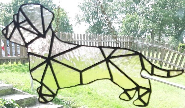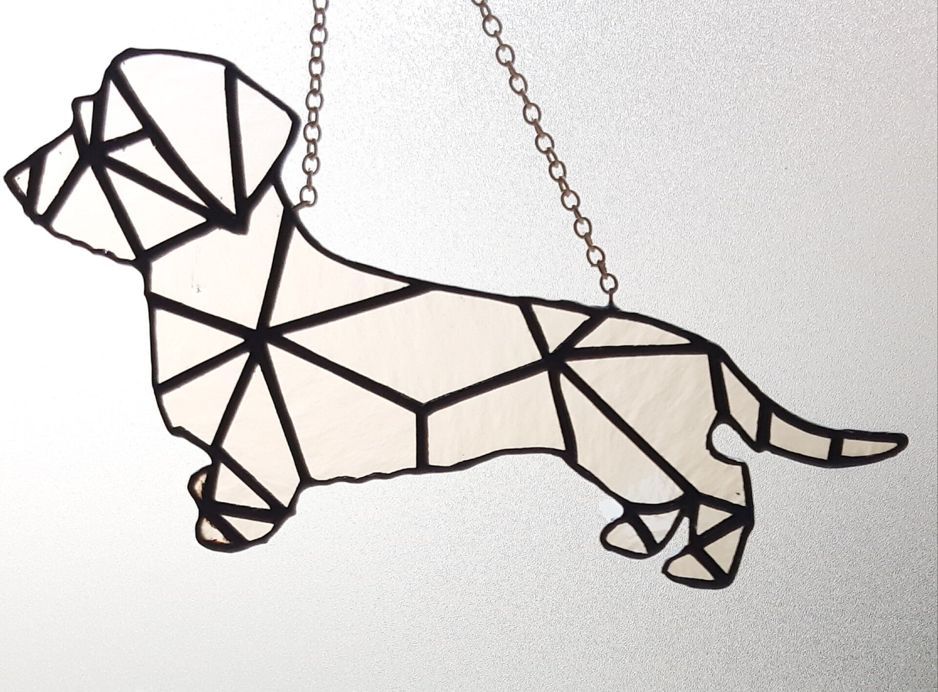 Een ruwharige Teckel gemaakt in Tiffany stijl incl. ophang ketting.