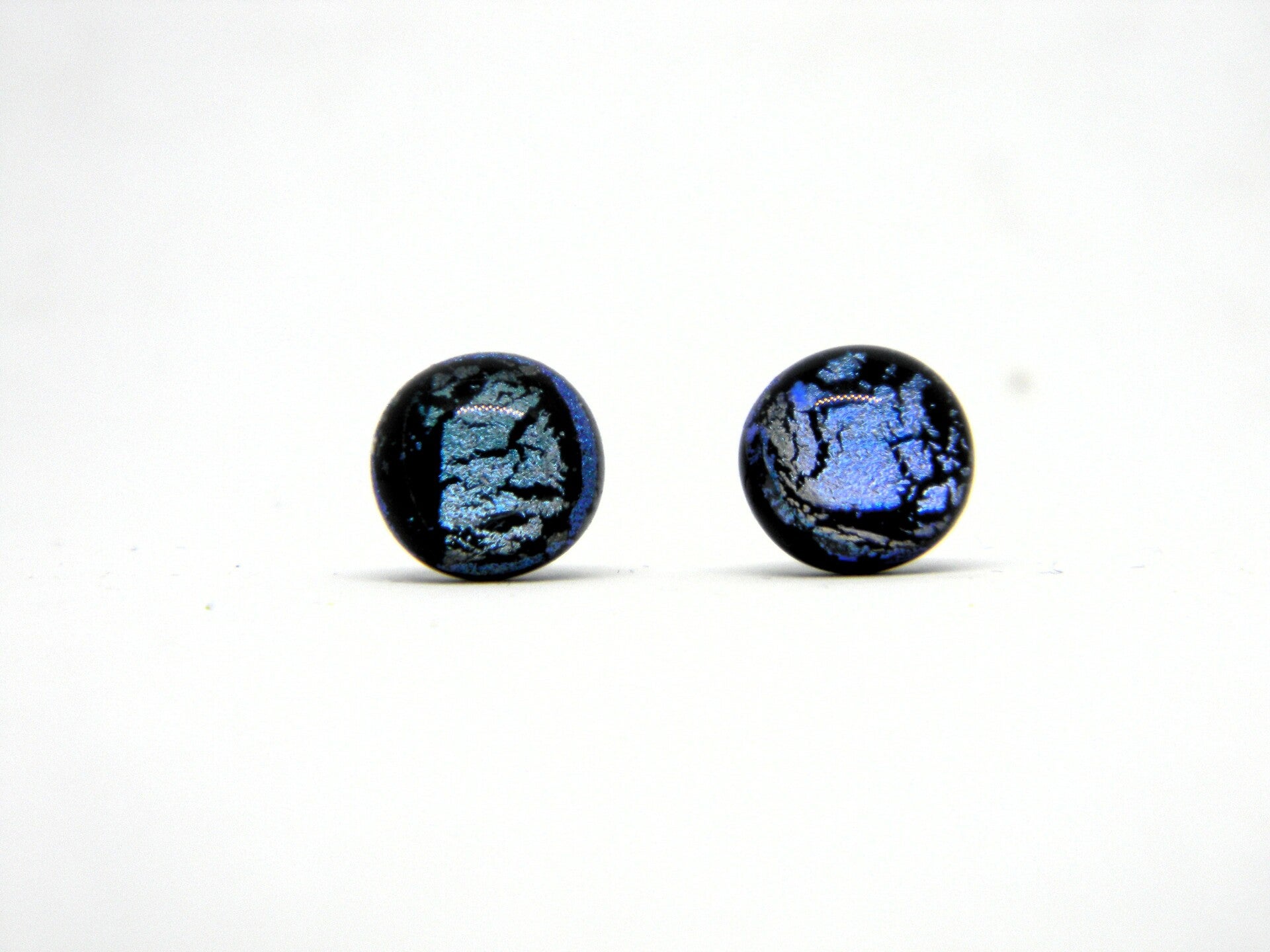 Dichroïsch glas geeft deze set een blauwe/zilverachtige glans. De stekers zijn van RVS en de stoppertjes van transparant siliconen.