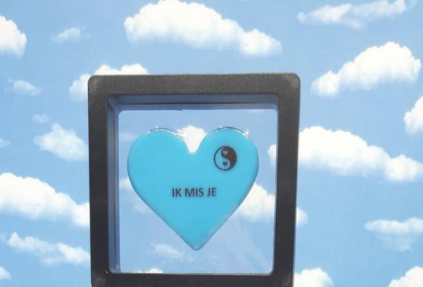 Dit hartje is slechts 3mm dik, gemaakt d.mv. glasfusing wordt gepresenteerd in een doosje van 7x7cm. De transparante laag geeft de illusie dat het hartje zweeft, ideaal voor op een tafel of dressoir.