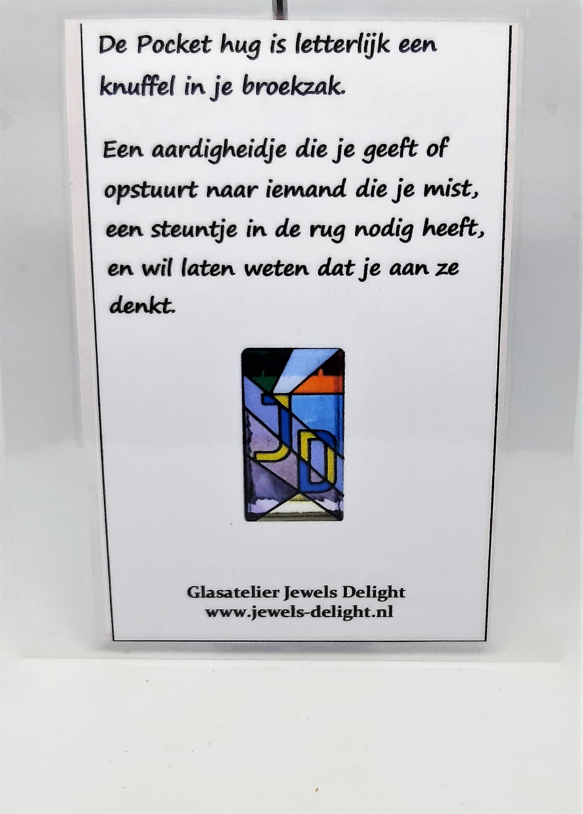 Dit hartje is slechts 3mm dik, gemaakt d.mv. glasfusing wordt gepresenteerd in een doosje van 7x7cm. De transparante laag geeft de illusie dat het hartje zweeft, ideaal voor op een tafel of dressoir.