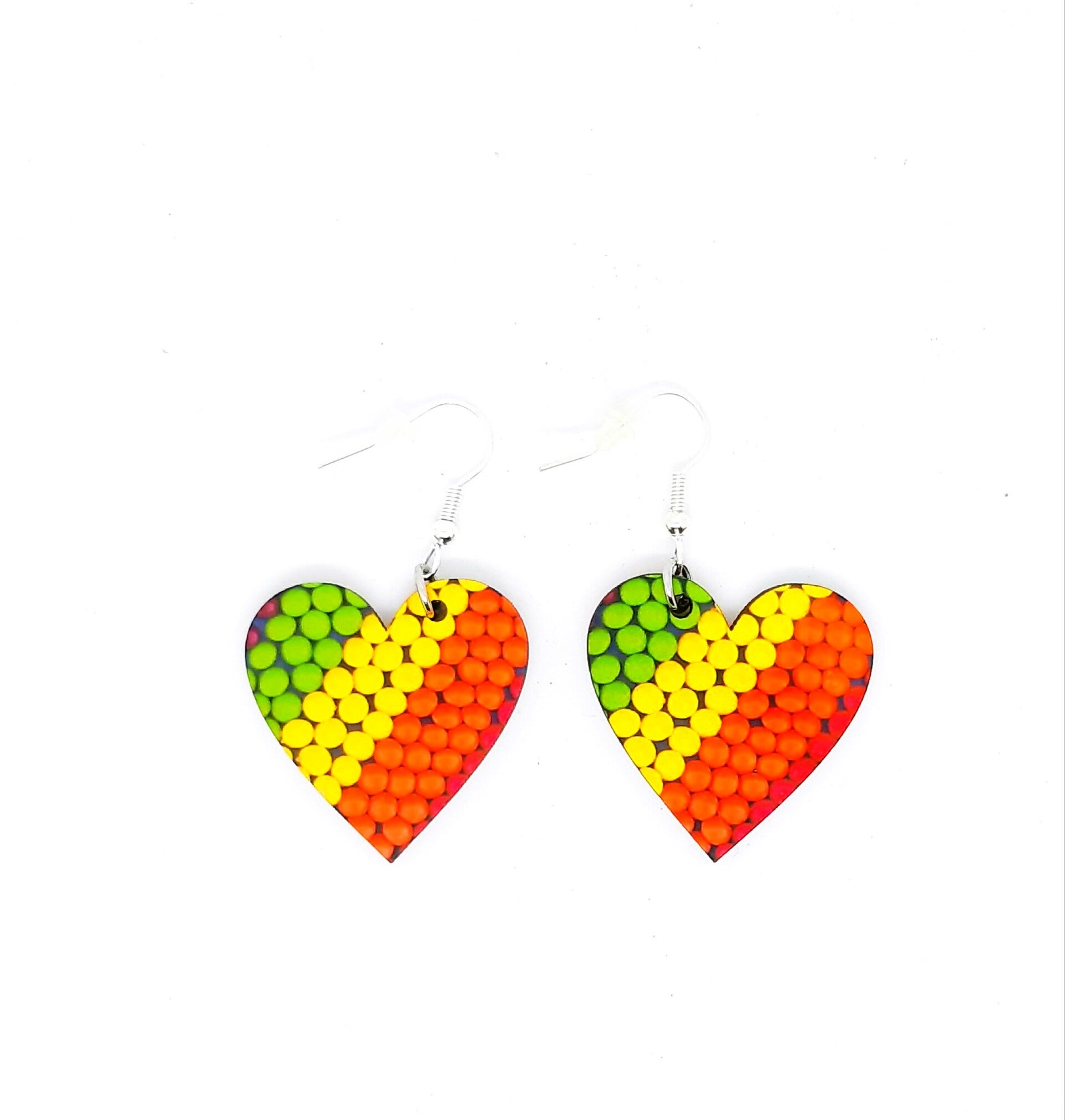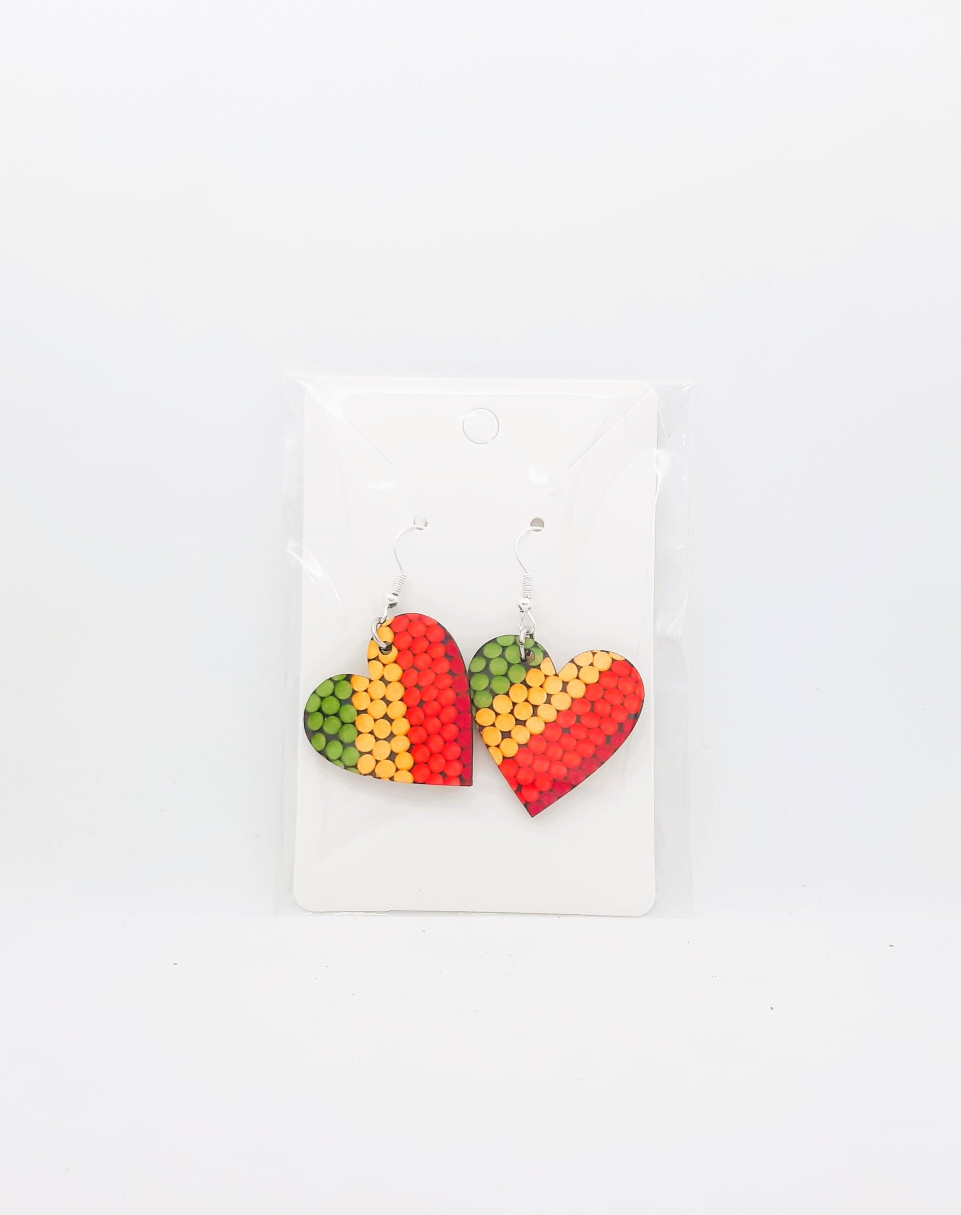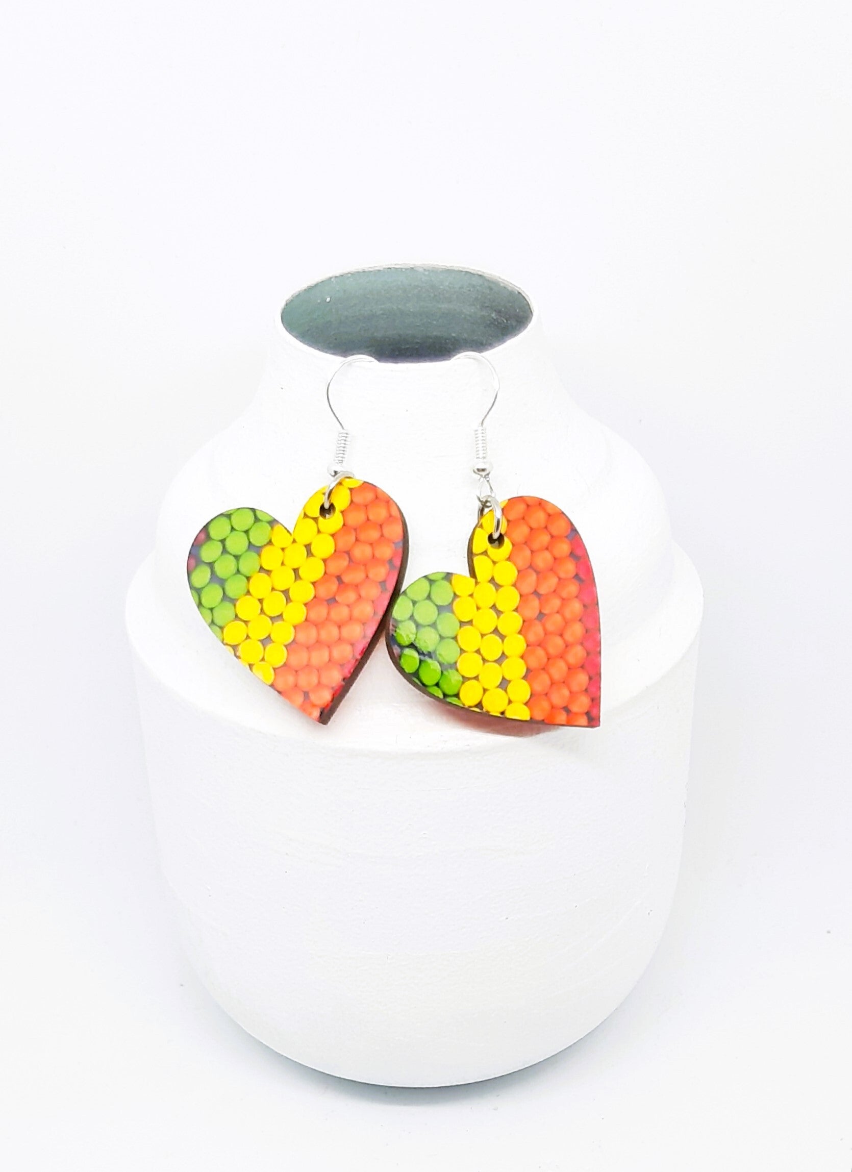 De hartjes zijn gesublimeerd op MDF en zijn zeer licht om te dragen. Afmetingen: breedte 3 x hoogte 5 cm, inclusief haakje.