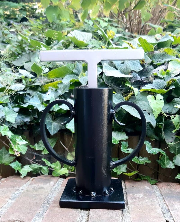 Maten: H 18 cm. B 16 cm. Voet: 10 x 10 cm. Gat: 5cm. Gewicht: 3.2 kilo.