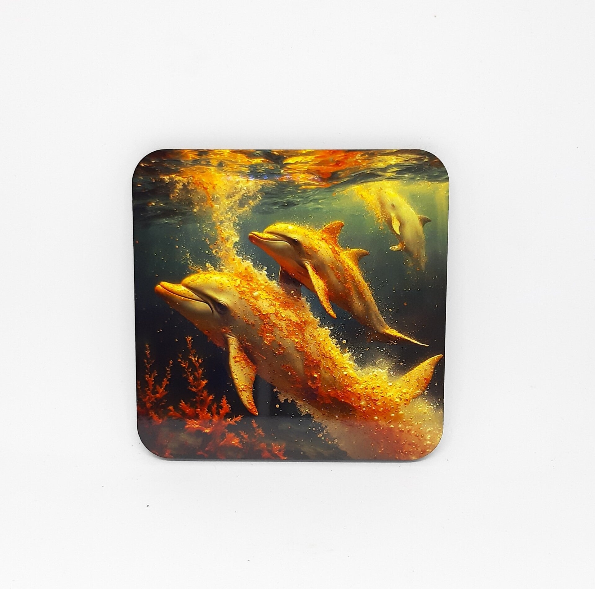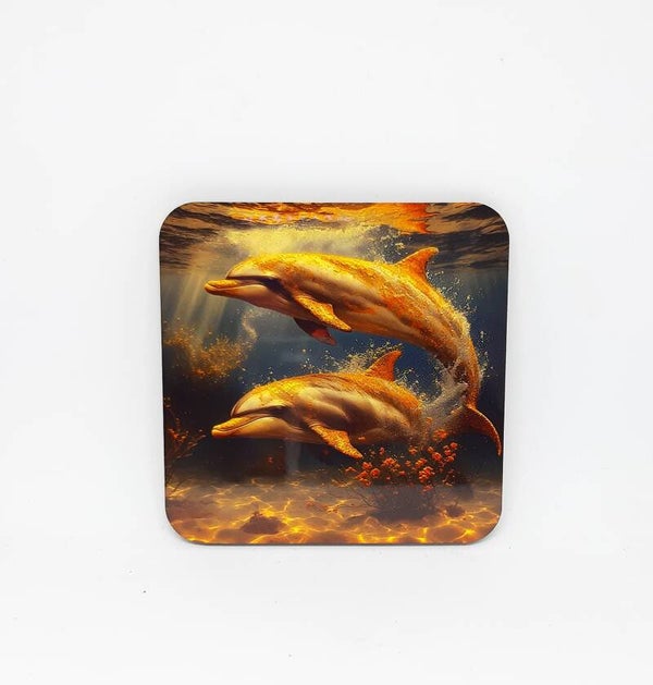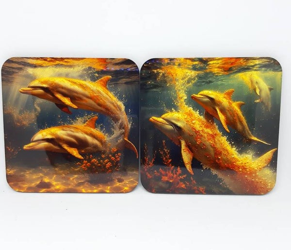 Zeer kleurrijk setje van 2 met hoogglans afbeeldingen van dolfijnen.
