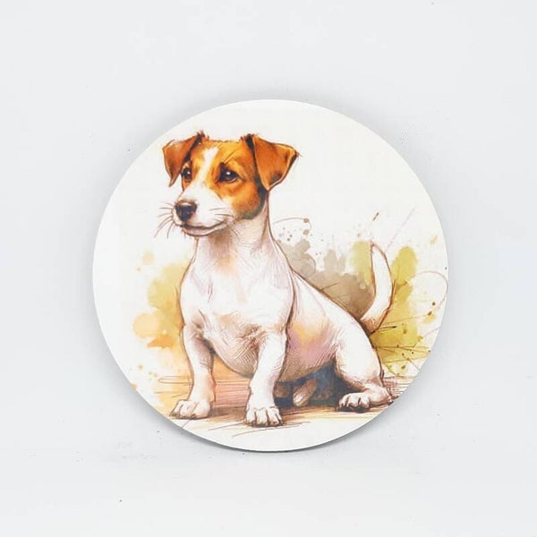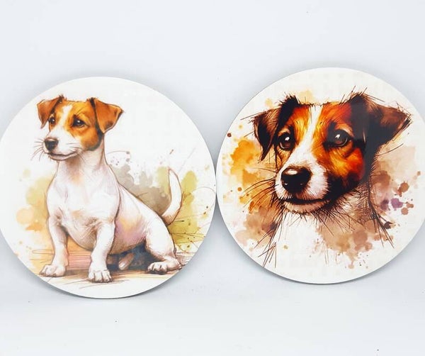 Mooie set van 2 ronde onderzetters met hoogglans afbeeldingen van de Jack Russell.