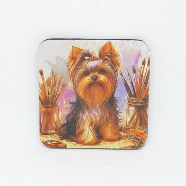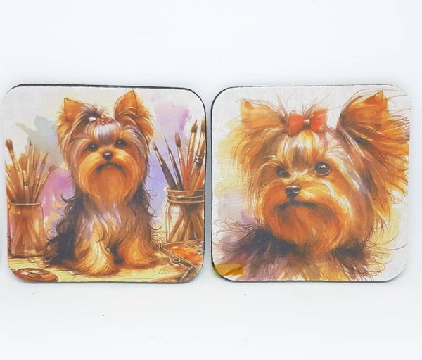De twee onderzetters zijn zacht met een rubberen onderkant. Ze zijn verpakt in cellofaan, waardoor je een kant-en-klaar cadeau hebt. Perfect voor de Yorkie-liefhebber!
