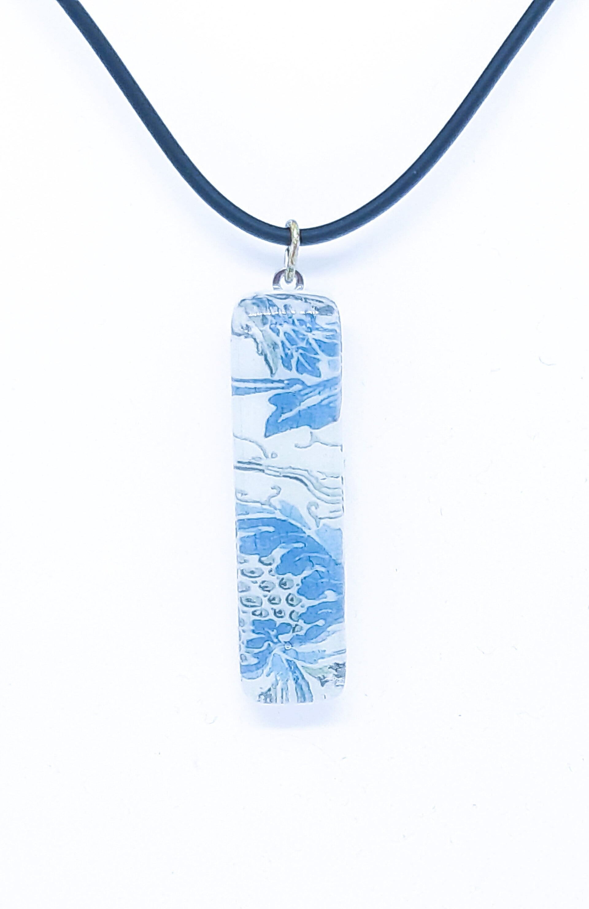 De hanger meet 4,5 x 1 cm, is handgemaakt en in de glasoven gefused.
