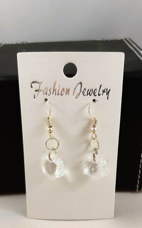 Oorbellen met een heldere, glanzende bedel in de vorm van een sneeuwvlok.