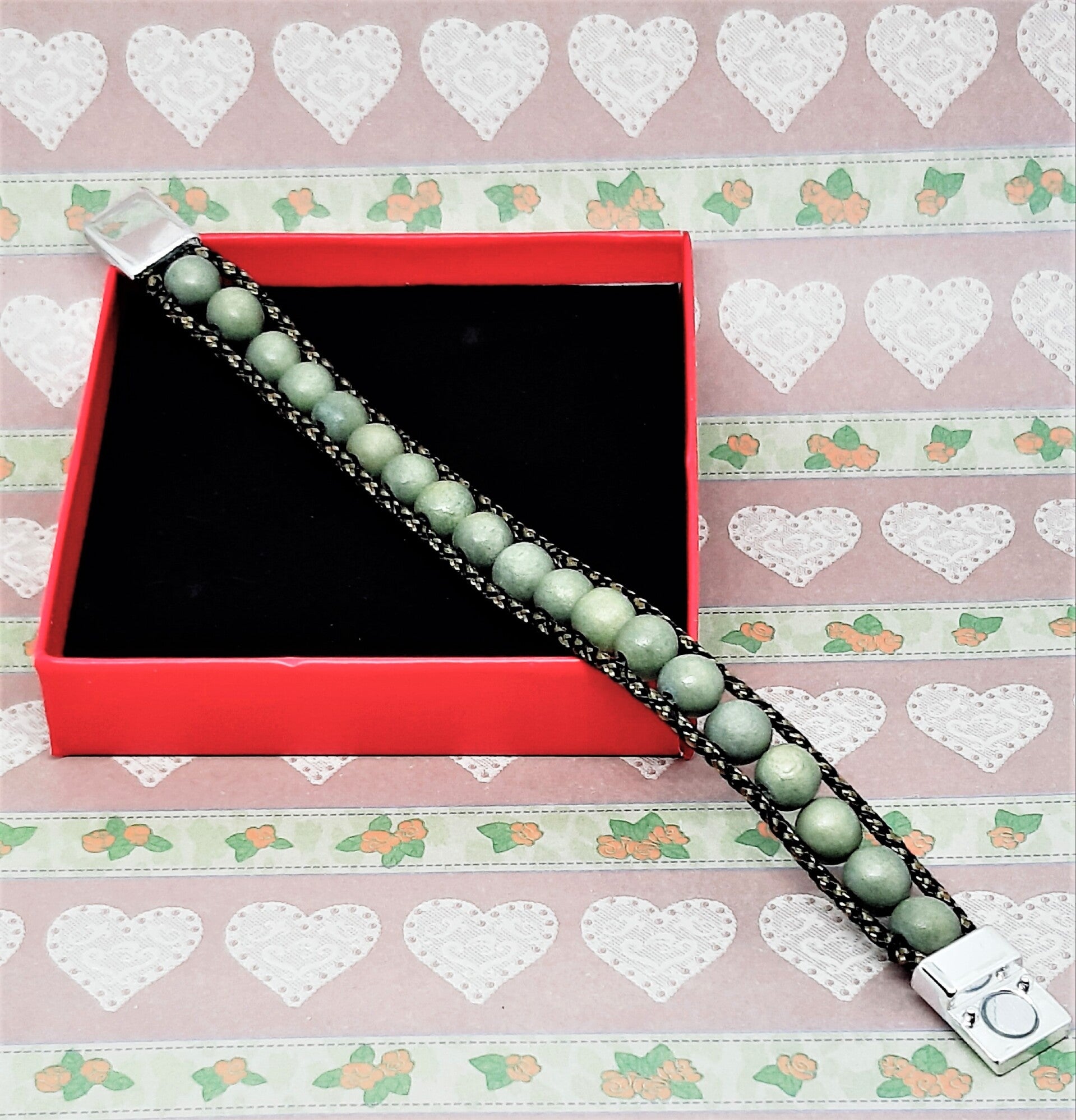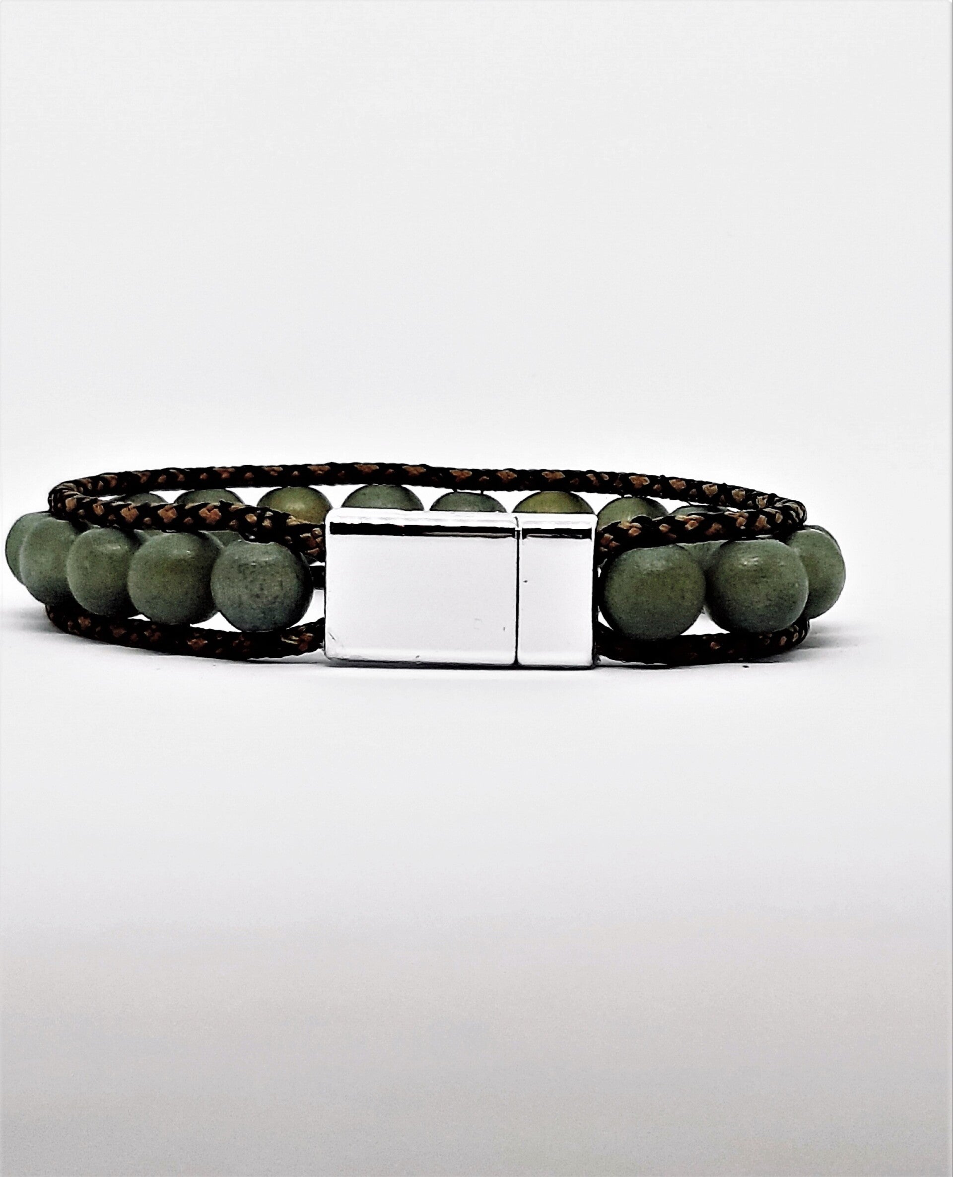 Deze armband is vervaardigd uit houten kralen van hoge kwaliteit, zeer sterk 1mm paracord en een zilverkleurige magneetsluiting.